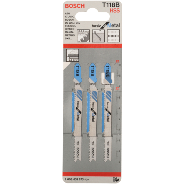 Полотно для лобзика Bosch Basic for Metal T 118 B, 1.9-2.3×92 мм, 3 шт