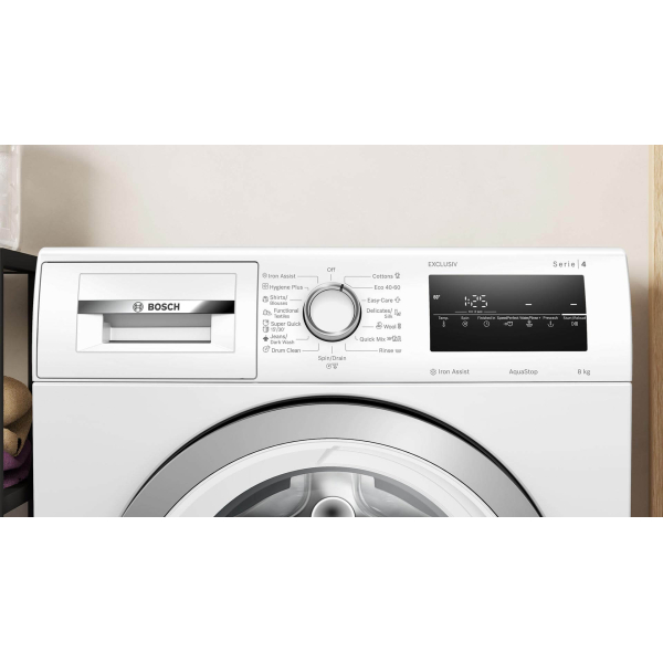 Пральна машина WAN24293BY з фронтальним завантаженням з лінійки Bosch Serie 4 призначена для ефективного прання білизни в домашніх умовах, має місткість 8 кг і підходить для сімей середнього та великого розміру. Пропонує 15 програм, включаючи прання бавовни (до 90°C), синтетики, делікатних тканин, вовни/ручного прання, сорочок, а також швидкі цикли на 15/30 хв. Середня витрата електроенергії становить лише 46 кВт·год, а споживання води сягає приблизно 47 літрів за цикл. Максимальна швидкість віджиму — 1200 об / хв. Об'єм барабана — 65 л. Клас енергоефективності А. Наявність функції дозавантаження. Акустичний сигнал закінчення програми. Контроль дисбалансу.