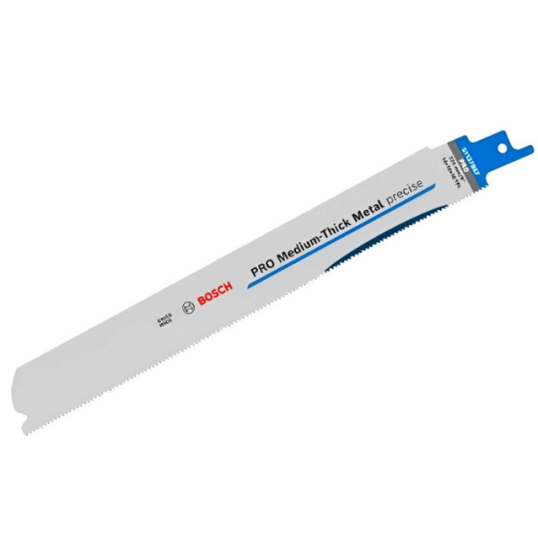 - Пиляльне полотно Bosch PRO Medium-Thick Metal забезпечить ефективний різання прямолінійний різ металевих конструкцій, наприклад, труб, товщиною 2-6 мм.