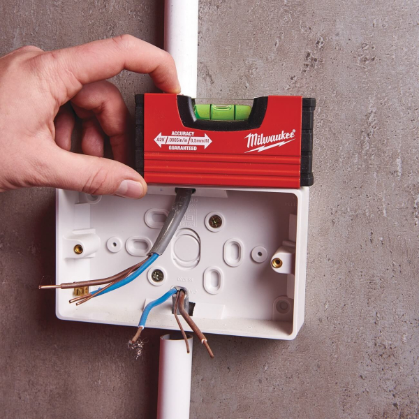 - Рівень Milwaukee MiniBox довжиною 10 см — це компактний інструмент, створений для швидкого і точного контролю горизонтальних поверхонь в умовах обмеженого простору. Завдяки малим габаритам він легко поміщається в кишеню або кріпиться на пояс, завжди залишаючись під рукою у майстра.