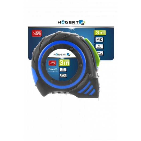 - Рулетка двостороння Hoegert з довжиною стрічки 3 м і шириною стрічки 16 мм — це професійний вимірювальний інструмент, що поєднує в собі надійність, довговічність і зручність використання. Вона стане незамінним помічником під час проведення будівельних, ремонтно-оздоблювальних або монтажних робіт, а також чудово підійде для повсякденного застосування в побуті.