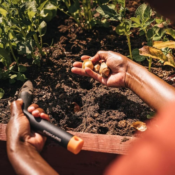 - Саджалка-місяцеутворювач Fiskars Solid — це практичний і зручний інструмент, створений для швидкого і точного формування лунок і борозен під час посадки насіння, цибулин і розсади.