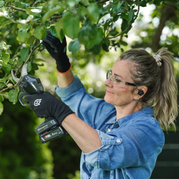- Інструмент має ергономічний дизайн із м'якими накладками на ручках, що забезпечує надійний та комфортний хват навіть під час тривалої роботи. Його компактні розміри та мала вага (лише 1 кг без акумулятора) роблять його надзвичайно маневреним, дозволяючи легко працювати в найгустіших кронах.