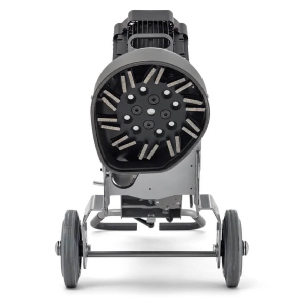 - Ця однофазна модель оснащена щітковим двигуном потужністю 2.2 кВт, який забезпечує стабільну роботу і високу швидкість обертання алмазної чашки. Робоча ширина шліфування становить 230 мм.