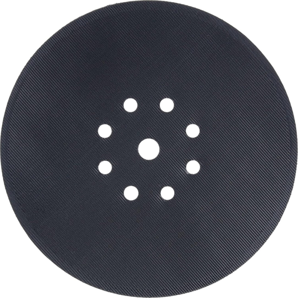 Шліфувальна підошва 2608000765 діаметром 215 мм призначена для захисту опорної тарілки та фіксації шліфувальних листів у шліфмашинах Bosch Professional GTR 550, GTR 55-225, GTR 55-85. Кріплення на липучці спрощує заміну шліфувального матеріалу, а 8 отворів в основі сприяють ефективному відведенню пилу.