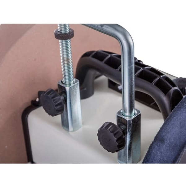Пило- та вологоізольовані шарикопідшипники валу двигуна | Плавне регулювання частоти обертання | Ємність з водою для змочування абразивного диску | Регульовані напрямні штанги для фіксації допоміжних пристроїв | Рукоятка для переносу | Висувна скринька для приладдя