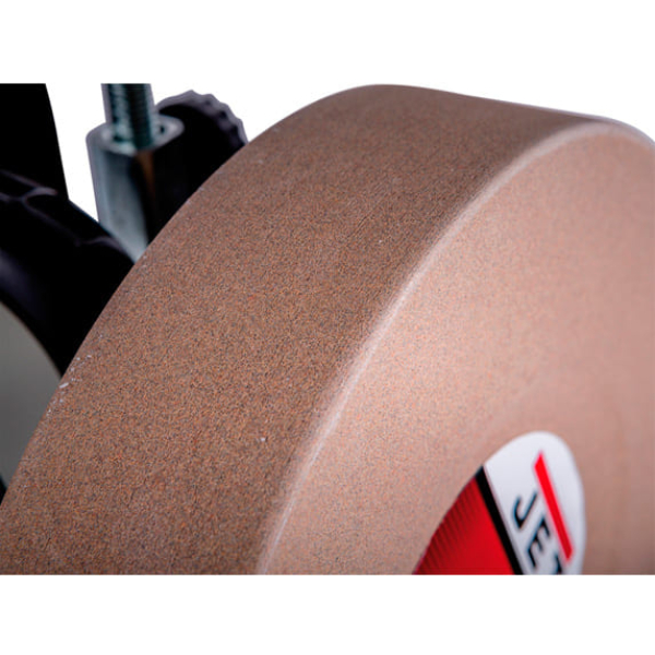 Шліфувально-полірувальний верстат JET JSSG-8-M - спеціалізоване обладнання, призначене для доведення, виправлення і заточування ріжучих інструментів. Оснащений електродвигуном потужністю 160 Вт з регулюванням частоти обертання 100-200 об/хв. Має шліфувальний круг 200х40 і полірувальний круг 190х30 мм. Важить конструкція 7,8 кг.