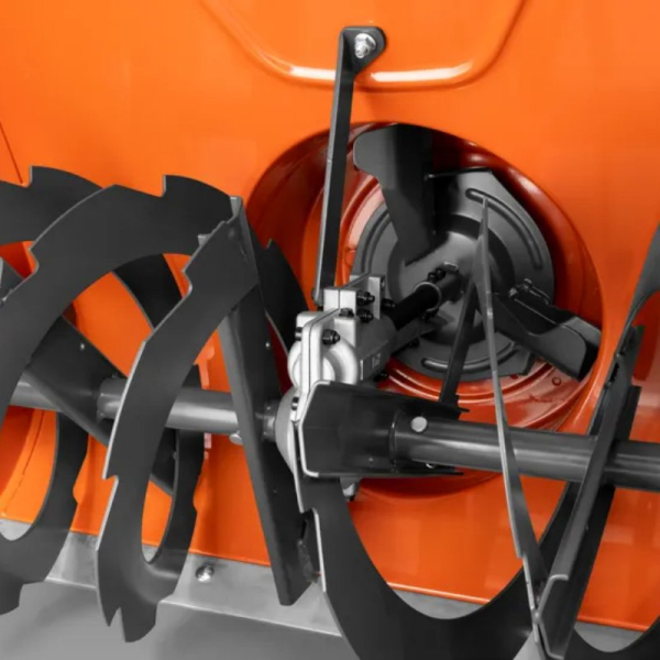 - Двоступінчаста система очищення включає шнек і крильчатку, які працюють одночасно з забезпеченням ефективного збору снігу і його швидкісного викиду через жолоб на відстань до 15 м.