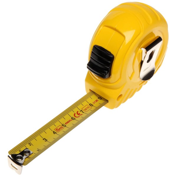 - Для полотна рулетки 5 м ширина стрічки становить 19 мм. Стрічка виготовлена з високоякісної гнучкої сталі з антикорозійним лаковим покриттям, завдяки чому ви можете не боятися, що з часом позначення зітруться.