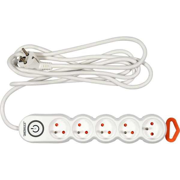 - Зручний побутовий подовжувач, який ідеально підійде для застосування вдома чи в офісі. Він може заживлювати навіть вимогливих споживачів, таких як електрочайник, мікрохвильова піч, електричний гриль, праска, пилосос, кухонний комбайн тощо.