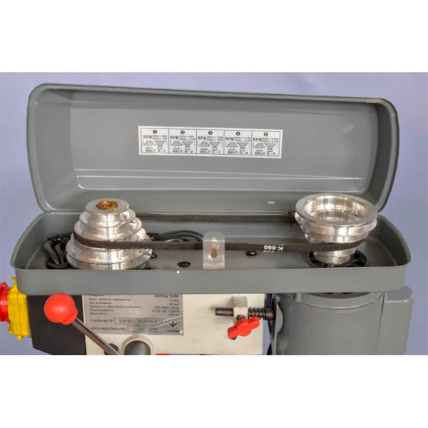 - У конструкції використані шліфовані алюмінієві шківи, які в поєднанні з клиновими приводними ременями забезпечують стабільну і безшумну роботу. Така система запобігає перегріванню двигуна і збільшує термін служби верстата. Відсутність різких навантажень на механізми підвищує надійність обладнання.