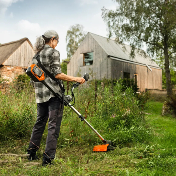 - Інструмент спроєктовано з фокусом на ергономіку. Велосипедна рукоятка забезпечує безліч варіантів захвату та надійний контроль над тримером. Телескопічний вал дозволяє легко відрегулювати довжину під зріст оператора, забезпечуючи ідеальне робоче положення та знижуючи навантаження на спину. У комплекті передбачено м'який ремінь, який рівномірно розподіляє вагу інструмента, роблячи тривалу роботу в саду по-справжньому комфортною та приємною.