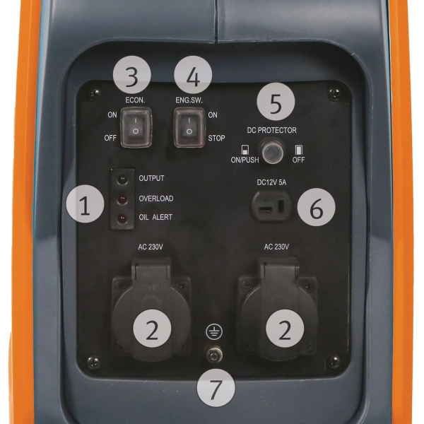 - Захисні вимикачі зупиняють роботу генератора в разі перегріву через перевантаження або нестачу масла.