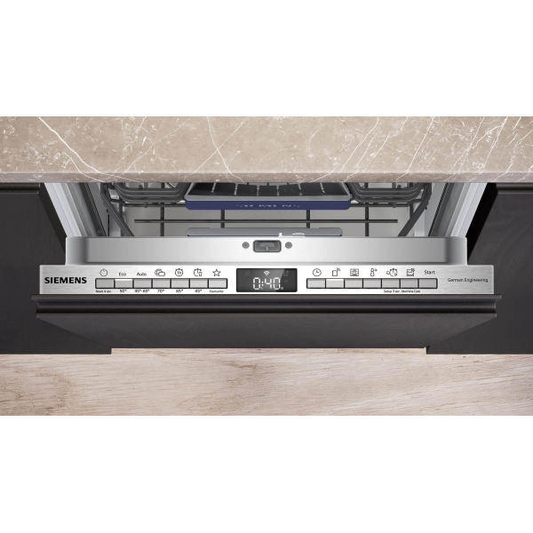 - Вузька посудомийна машина Siemens SR65EX02MK із серії iQ500 розроблена для кухонь з обмеженим простором. Завдяки ширині всього 45 см, вона ідеально впишеться в компактні або невеликі/середні будинки.