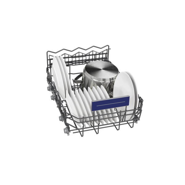 - Незважаючи на вузький формат, модель розрахована на завантаження до 10 комплектів посуду, що робить його зручним вибором для сімей із 2-4 осіб.