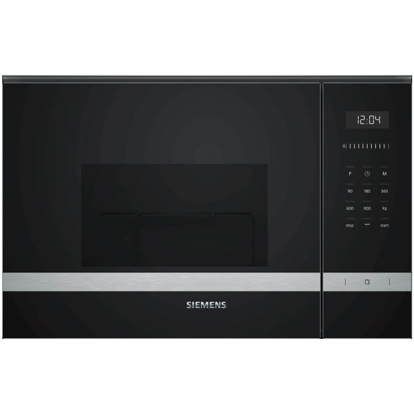 Вбудована мікрохвильова піч Siemens BE555LMS0 із серії iQ500 розроблена для органічної інтеграції в сучасні кухонні меблі. Вона пропонує 5 рівнів потужності мікрохвильової печі до 900 Вт, а також гриль потужністю 1200 Вт для рівномірного підрум'янення і включає 8 автоматичних програм cookControl для досягнення оптимальних результатів. Об'єм камери: 25 л.