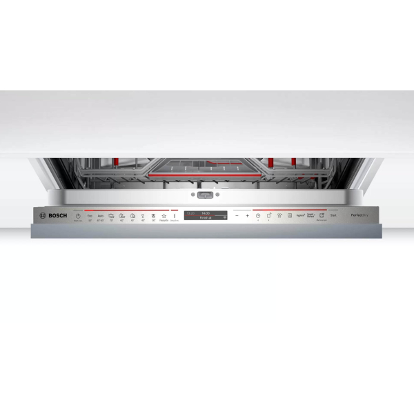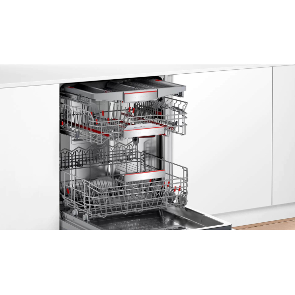 - Інтегрується з програмою Bosch Home Connect, що дозволяє віддалено керувати посудомийною машиною, вибирати програми за допомогою функції EasyStart та отримувати повідомлення про низький рівень ополіскувача або миючого засобу.