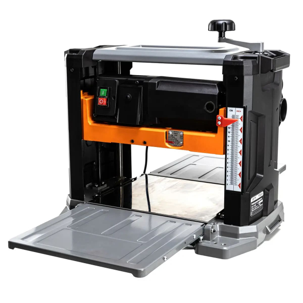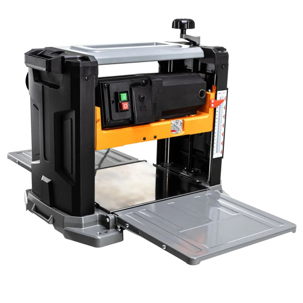 - Два гострі ножі з інструментальної сталі забезпечують ефективне стругання деревини на глибину до 3 мм за один прохід.