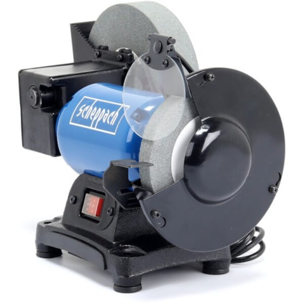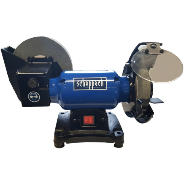 - Scheppach BG 200W — це потужний комбінований верстат, призначений для заточування ножів, сокир, різців, ножиць, свердел, садового та сільськогосподарського інвентарю, а також для чорнової та фінішної обробки металевих виробів.