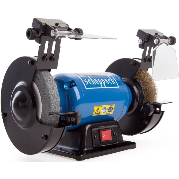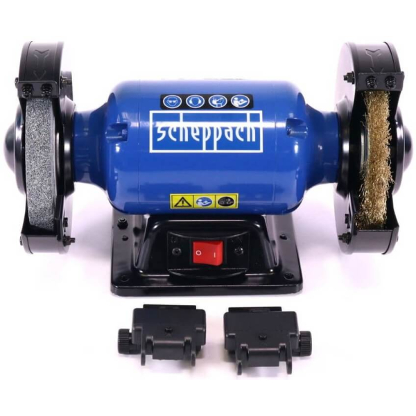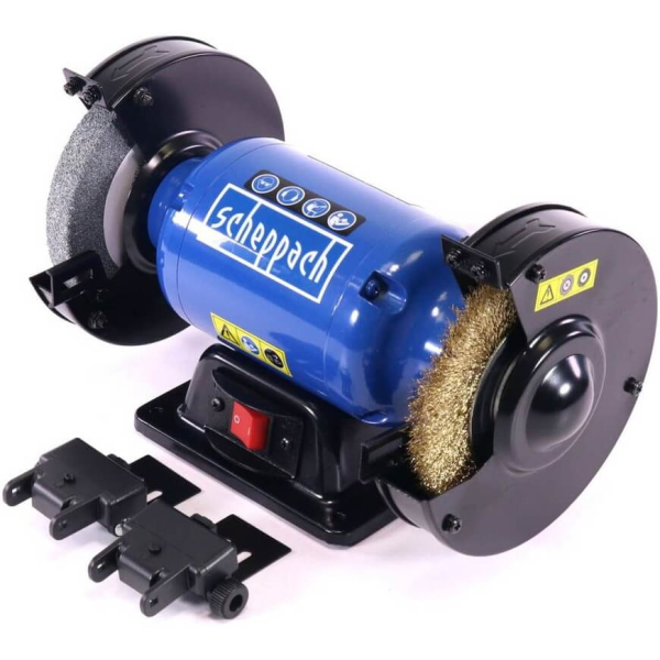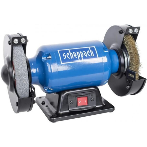 - Scheppach SM150LB — універсальний верстат для шліфування та полірування, призначений для обробки і заточування різних матеріалів, який стане надійним помічником для професіоналів і домашніх майстрів, забезпечуючи якісну і безпечну роботу.