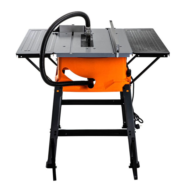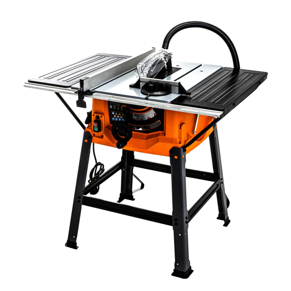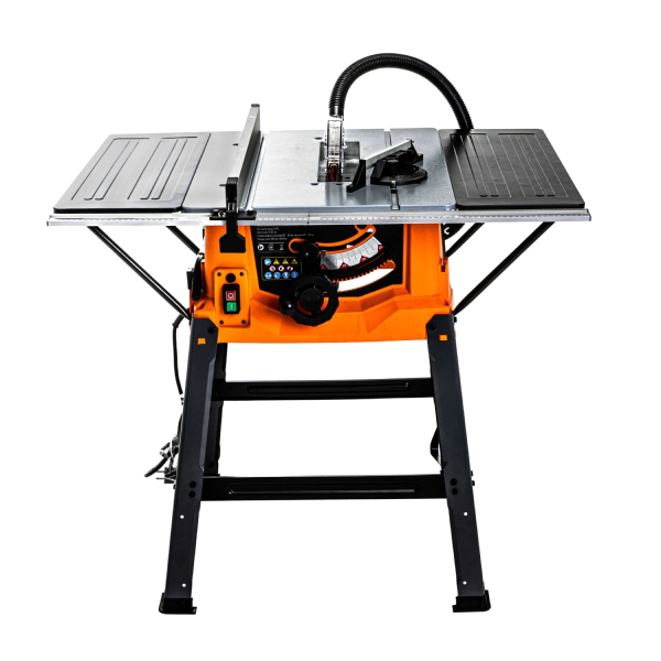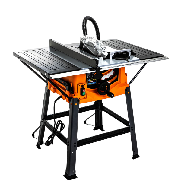 - Робочий стіл 640х940 мм дозволяє комфортно працювати з габаритними заготовками – за рахунок великої поверхні вони не заважають, а точність різу підвищується завдяки стійкій опорі.