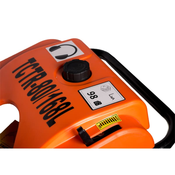 Tekhmann construction TCTR-80/168L – зручне обладнання для ущільнення будівельних сумішей і ґрунту. Апарат оснащений чотиритактним бензомотором 4,1 к.с. (3 кВт) робочим об'ємом 193 куб.см., який розвиває швидкість вібрації до 2500 уд/хв. Сила удару становить 10-13 кН, що гарантує ефективне ущільнення на глибину до 45 см.