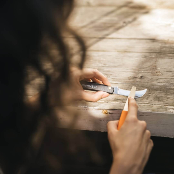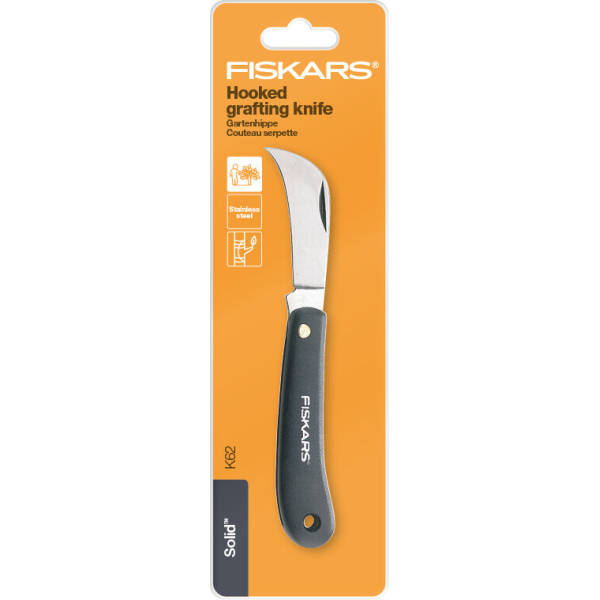 - Вигнутий ніж для щеплень Fiskars K62 — це компактний і надійний інструмент, створений для точної й акуратної роботи з рослинами. Він стане чудовим помічником у саду і незамінний у сезон щеплень.