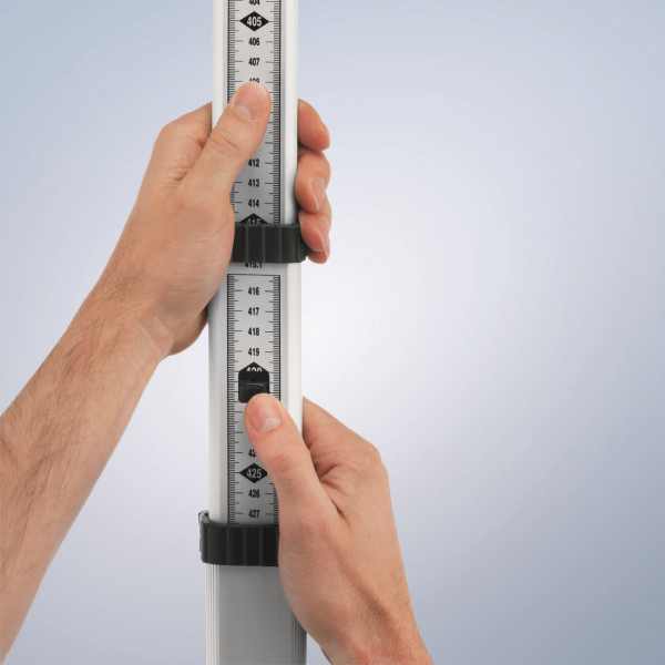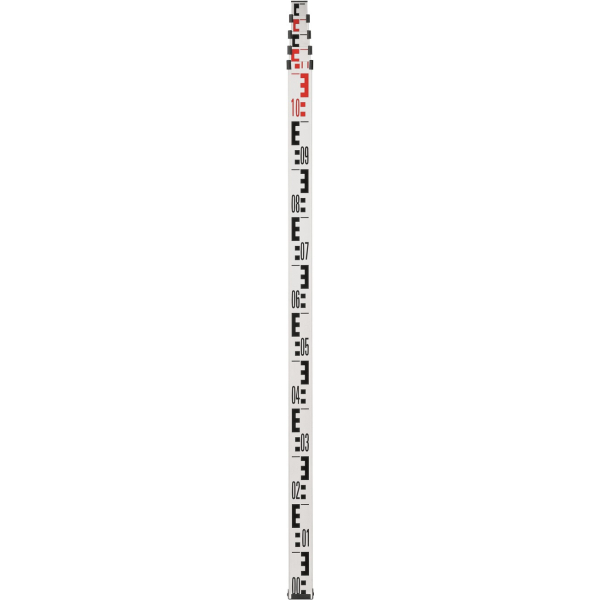 - Рейка складається з п'яти висувних секцій і здатна розсуватися до довжини 5 метрів, що дає змогу робити виміри на великих висотах і у важкодоступних місцях. Шкала нанесена в метрах і сантиметрах, що робить зчитування показань швидким і точним.