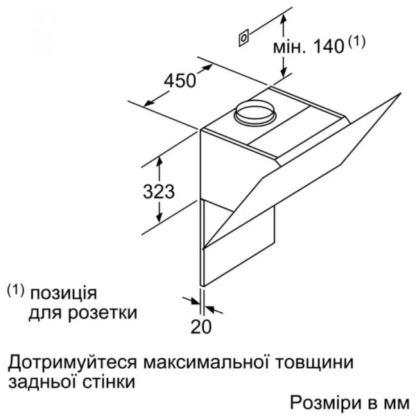 Настінна витяжка 60 см з високою ефективністю очищення повітря