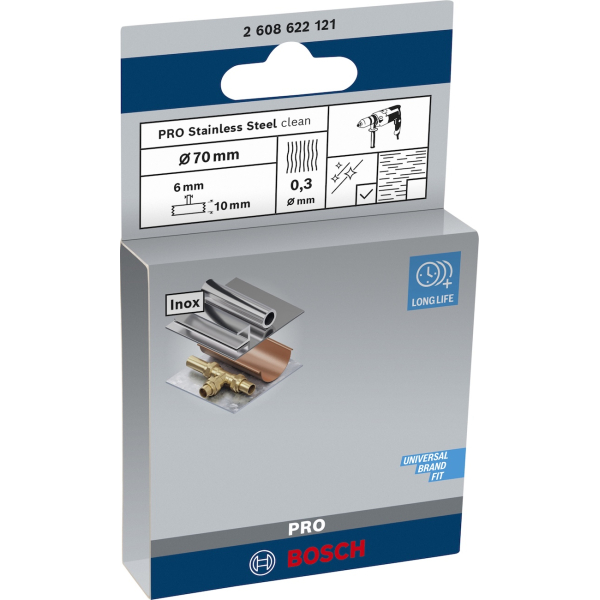 Опис зачисної дискової щітки Bosch Pro Stainless Steel clean 70x0.3 мм, прямий хвостовик: