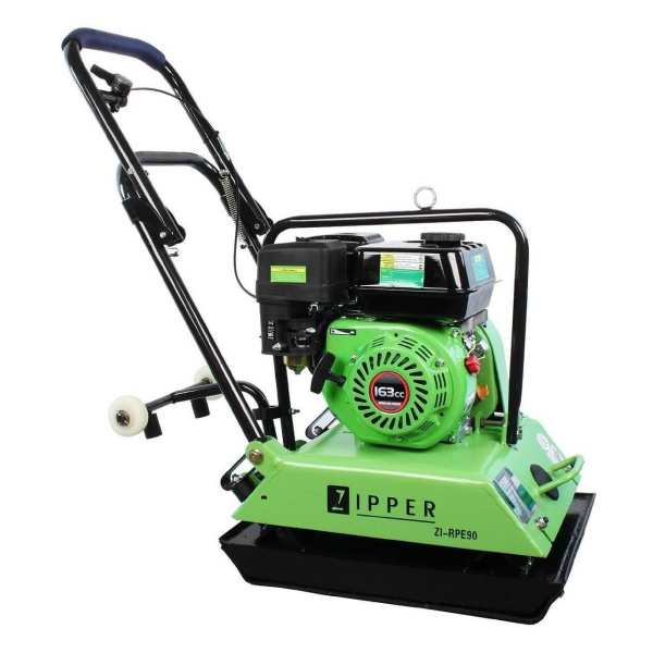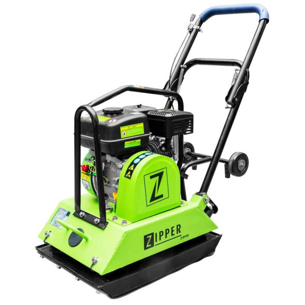 Напівпрофесійна маневрена і легка віброплита Zipper ZI-RPE90 з 4-тактним бензиновим двигуном потужністю 4.1 кВт і глибиною укладання 20 см. Сила удару 15.5 кН, вібраційні удари до 6300 уд/хв. Підошва суцільнометалева, розмір 550х420 мм, з вулканічним килимком. Є транспортувальні колеса і складна ручка.
