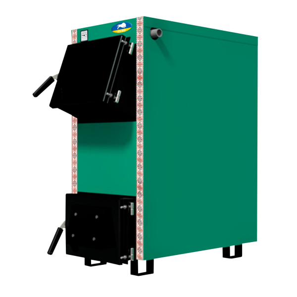 - Котел призначений для спалювання деревини, вугілля та інших видів твердого палива, що робить його універсальним рішенням для опалення.