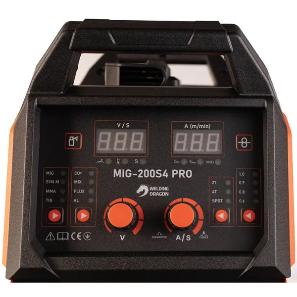 - Welding Dragon MIG-200 S4 PRO – це сучасний зварювальний інвертор, що поєднує в собі можливості напівавтоматичного зварювання в середовищі захисних газів MIG/MAG, ручного дугового зварювання MMA і аргонодугового зварювання з контактним запалюванням TIG Lift.